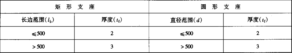 d) 四氟滑板支座粘貼的聚四氟乙烯板材Z小厚度應(yīng)符合表 的規(guī)定。