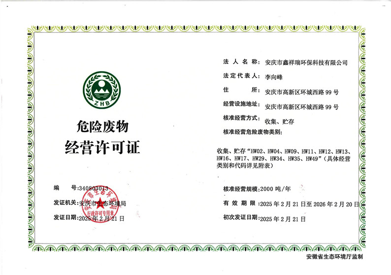 鑫祥瑞環(huán)保為高新技術(shù)企業(yè)、省專精特新企業(yè)、省勞動保障誠信示范單位、科技型中小企業(yè)、安慶市應急救援主要單位。