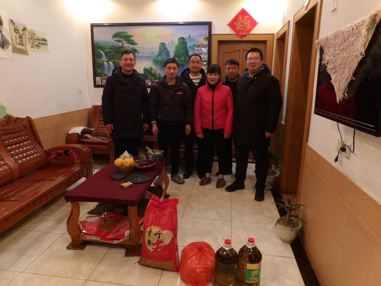 新春將至,困難職工的生活始終牽掛著公司領(lǐng)導(dǎo)的心,慰問困難職工,一直都是鑫祥瑞的公司傳統(tǒng)。1月29日下午,公司董事長(zhǎng)盧濤、總經(jīng)理李向峰、工會(huì)主席王長(zhǎng)安、職代會(huì)主任馬剛一行來到困難職工家中走訪慰問,為他們送去大米、食用油、面條等春節(jié)禮品,并轉(zhuǎn)達(dá)了公司的深切問候和美好祝福。