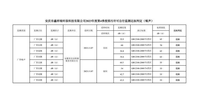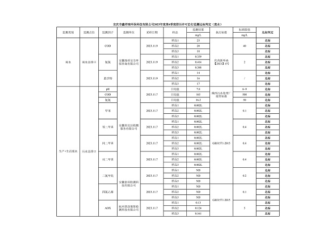 安慶市鑫祥瑞環(huán)??萍加邢薰?023年第4季度排污許可自行監(jiān)測公開